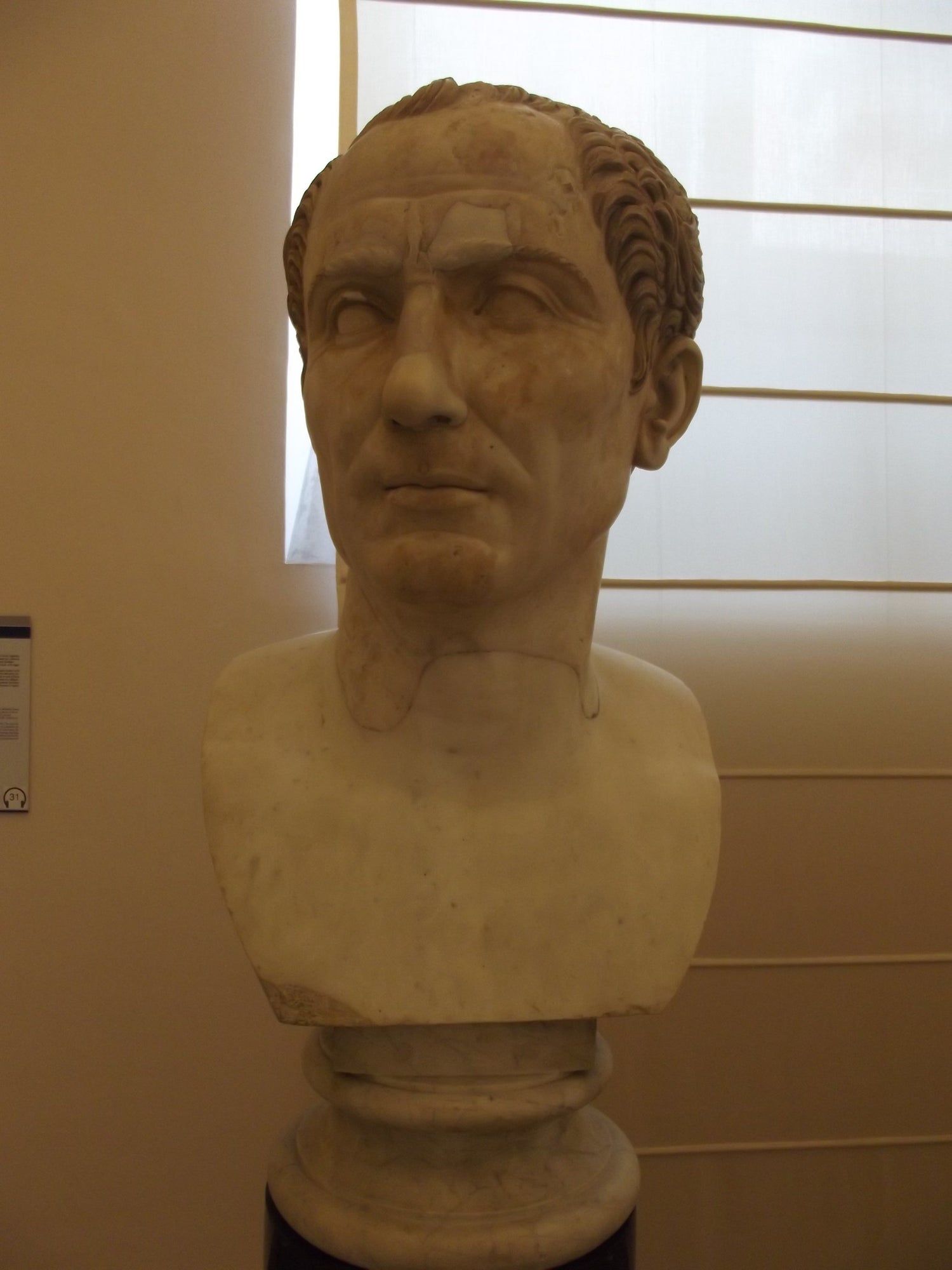 This statue of Caesar was created in Rome in the year 110 AD during the reign of Emperor Trajan. It is a replica of a bust created in the year 50 BC, meaning the depiction was made while Caesar was still alive. The sculpture is made from marble.
